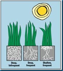 Avoid this scene – having water dousing the sidewalks, and driveways. If water is draining off into the gutters, stop the watering and let the water sink into the soil. Resume watering later to finish the deep watering the grass needs.